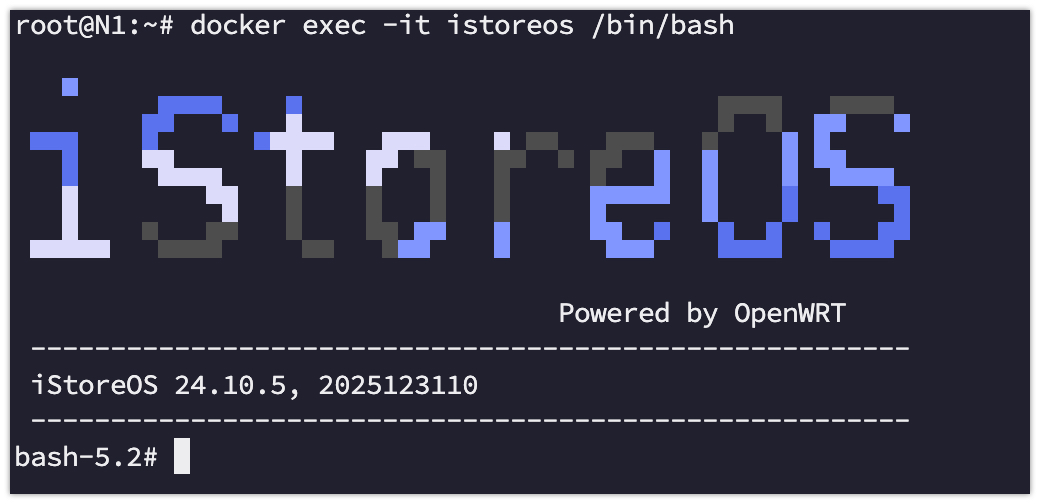sudo docker exec -it istoreos /bin/bash