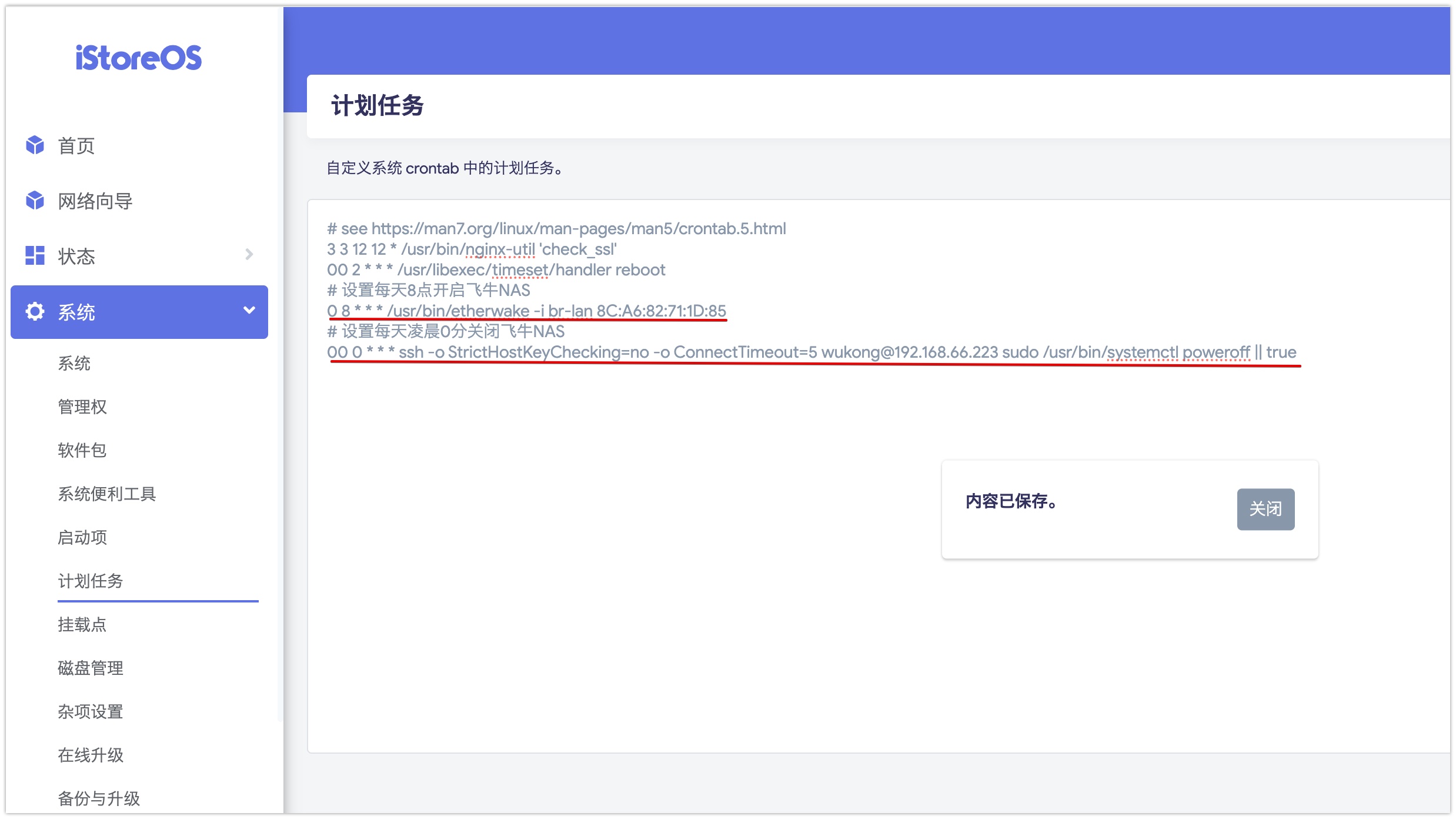 七、将上述关机命令加入OpenWrt的计划任务 至此 大功告成!